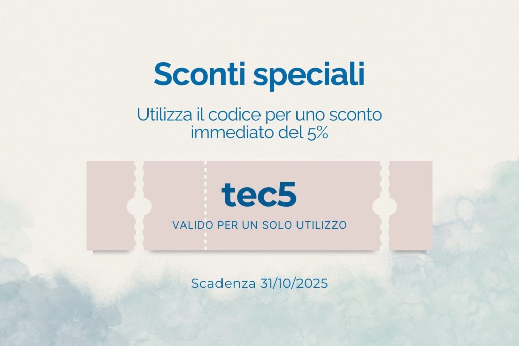 Approfitta degli sconti su Tecnowell. Utilizza il codice sconto "tec5" in fase di checkout e ottieni immediatamente uno sconto del 5%. Il codice sconto scade il 31 Ottobre 2025 e può essere utilizzato solo una volta.
