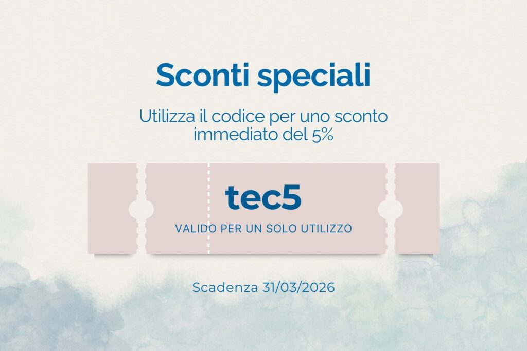 Approfitta degli sconti su Tecnowell. Utilizza il codice sconto "tec5" in fase di checkout e ottieni immediatamente uno sconto del 5%. Il codice sconto scade il 31 Marzo 2026 e può essere utilizzato solo una volta.